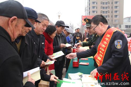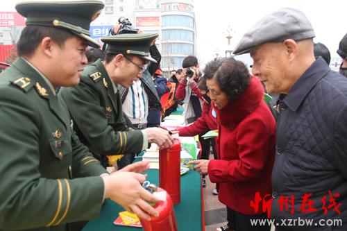 3月15日,原平市開(kāi)展了“3.15國(guó)際消費(fèi)者權(quán)益日”宣傳咨詢(xún)服務(wù)活動(dòng)?!岸拘袆?dòng)”開(kāi)展以來(lái),該市組織消防、藥品等有關(guān)部門(mén)工作人員開(kāi)展以“新消費(fèi) 我做主”為主題多種形式的宣傳咨詢(xún)服務(wù),設(shè)立了咨詢(xún)臺(tái)、打擊非法集資等展示臺(tái),接受群眾咨詢(xún),并發(fā)放各種宣傳材料十萬(wàn)余份,提高消費(fèi)者法制法規(guī)和知假辯假的能力。圖為消防工作人員向消費(fèi)者講解如何識(shí)別偽劣滅火器。(褚震 攝)