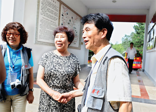 7月25日,大寨集團(tuán)董事長郭鳳蓮向前來采訪的記者們介紹情況