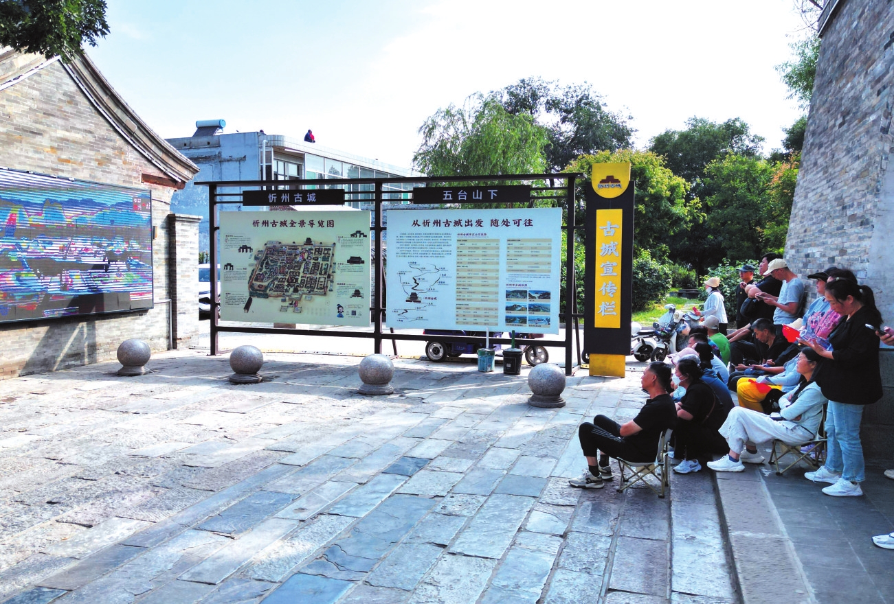 忻州古城,游客駐足觀看紀(jì)念大會。申健攝