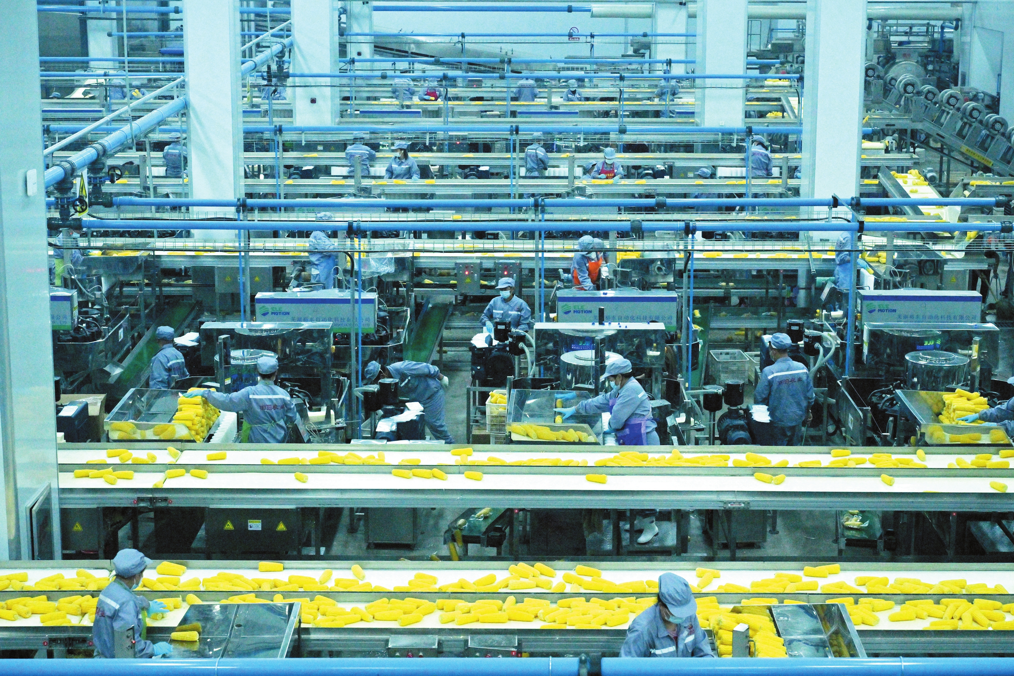 在五寨縣甜糯玉米加工園區(qū)內(nèi),一條條自動化生產(chǎn)線正全速運轉(zhuǎn)。每一穗玉米都需經(jīng)過嚴格的人工檢驗,確保顆粒飽滿、形態(tài)完好。這套“自動化+人工精檢”的雙重品控體系,為“五寨甜糯玉米”品質(zhì)如一、暢銷全國提供了有力保障。(記者 馮曉磊攝)