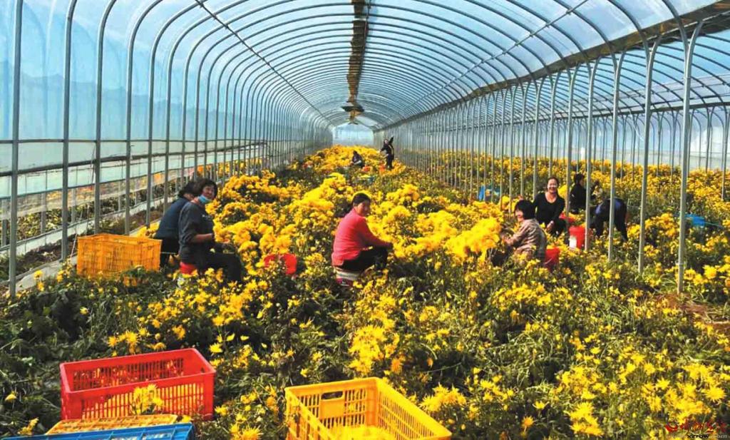 “你看這花,今年長得比去年還壯實?!闭诓烧墓と藙⒂⑿χe起一朵金絲菊,花瓣上還沾著清晨的露水,“我家就在附近村,自從基地建起來,我農閑時就來干活,既能照顧家里,一天還能掙100元,比外出打工舒心多了?!闭f話間,她又彎腰采下一朵,小心翼翼地放進筐子中,“這花金貴,下手得輕,不然花瓣掉了就賣不上好價錢?!?/p>