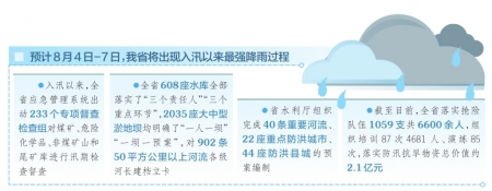 據(jù)氣象部門報告,預(yù)計(jì)8月4日-7日,我省將出現(xiàn)入汛以來最強(qiáng)降雨過程。為做好此次強(qiáng)降雨防范應(yīng)對,8月3日下午,省防汛抗旱指揮部組織了緊急會商,進(jìn)一步強(qiáng)弱項(xiàng)、補(bǔ)短板,全力做好各項(xiàng)工作,確保安全度汛。