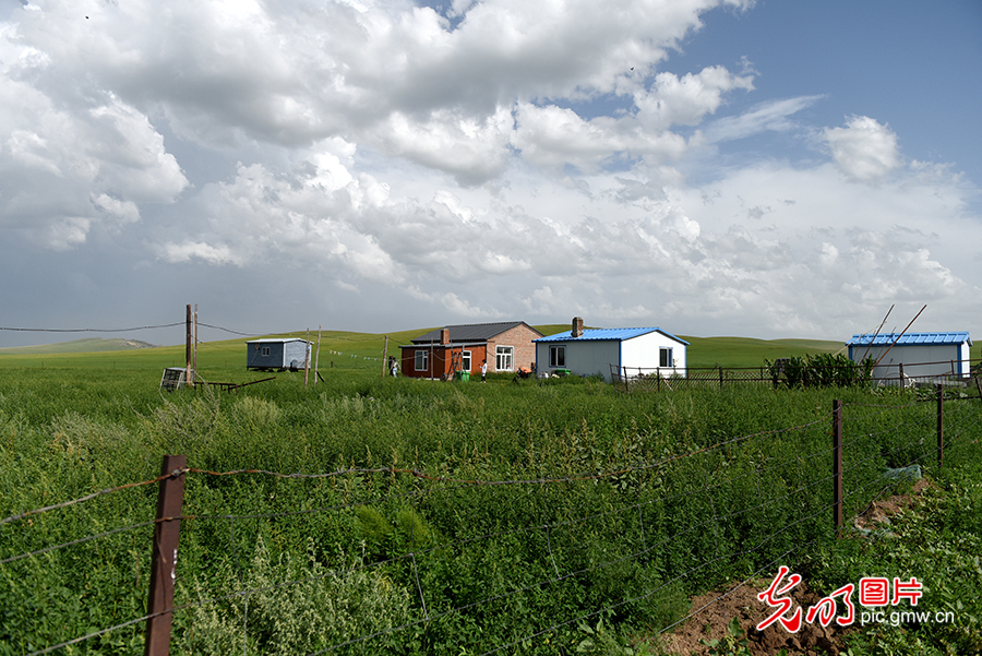 在其日麥拉圖家附近還有三所小房子,這是其日麥拉圖給自己的三個(gè)兒子準(zhǔn)備的?!皟鹤觽兌荚谄炖镔I了新房子、新車子,有時(shí)候也會(huì)帶著兒媳婦、孫子來牧場(chǎng),和我們一起養(yǎng)牛、養(yǎng)馬?!眻D為2020年8月2日,其日麥拉圖家。(潘迪攝/光明圖片)