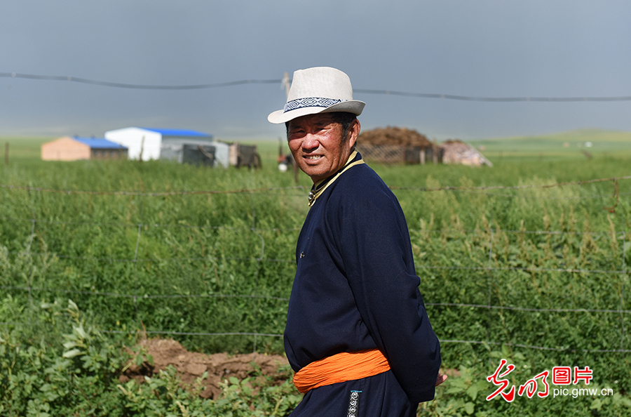 光明網(wǎng)訊(記者 趙艷艷 潘迪 李剛)提起其日麥拉圖,在陳巴爾虎旗的牧民中可謂無人不知、無人不曉。60年前,其日麥拉圖作為一名上海孤兒被內(nèi)蒙古自治區(qū)接到草原撫養(yǎng);60年來,其日麥拉圖加入了黨組織,于1995年擔(dān)任陳巴爾虎旗東烏珠爾蘇木海拉圖嘎查書記,一干就是八年。圖為2020年8月2日,其日麥拉圖在自家牧場(chǎng)。(潘迪攝/光明圖片)