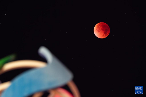這是9月8日在吉林省長(zhǎng)春市拍攝的“紅月亮”。(新華社記者 許暢 攝)
