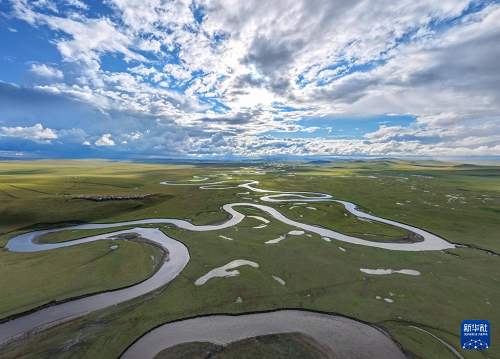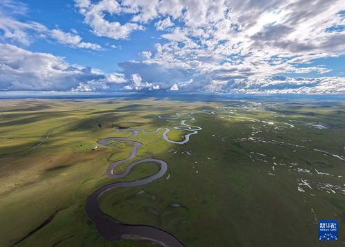 9月14日拍攝的內(nèi)蒙古呼倫貝爾市陳巴爾虎旗草原上的莫爾格勒河(無人機照片)。(新華社記者 貝赫 攝)