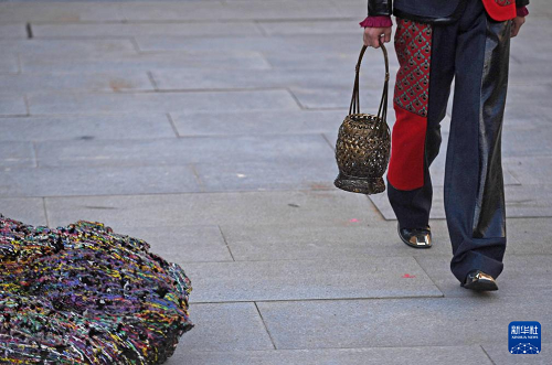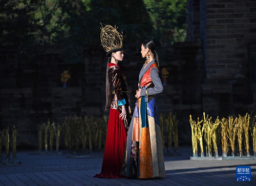 9月17日,模特在閉幕秀上展示朱炳仁設(shè)計(jì)的服飾。(新華社記者 魏海 攝)