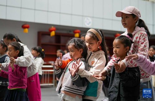 9月11日,在拉薩市實(shí)驗(yàn)小學(xué),孩子們在練習(xí)藏戲。(新華社記者 晉美多吉 攝)