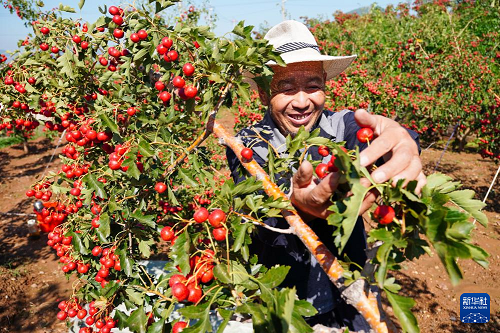近日,山東省新泰市山楂陸續(xù)成熟,當(dāng)?shù)毓r(nóng)忙著進行山楂收獲、運輸、存儲等工作。近年來,新泰市因地制宜發(fā)展山楂產(chǎn)業(yè),當(dāng)?shù)厣介N植面積達(dá)4.7萬余畝,山楂產(chǎn)業(yè)已成為帶動當(dāng)?shù)厝罕娫鍪罩赂坏奶厣a(chǎn)業(yè)。
