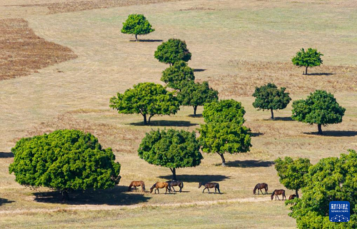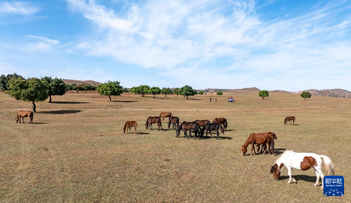 9月27日拍攝的興安盟科爾沁右翼中旗五角楓生態(tài)旅游景區(qū)秋景(無人機(jī)照片)。(新華社記者 貝赫 攝)