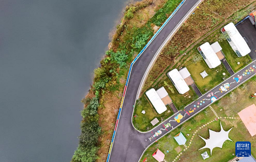 這是10月10日拍攝的青島市南墅鎮(zhèn)青山繡湖旅游度假區(qū)(無人機(jī)照片)。(新華社記者 丁洪法 攝)