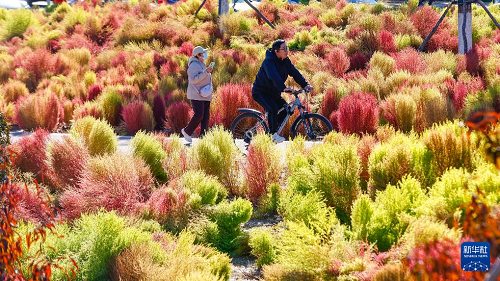 11月2日,游人在天津市濱海新區(qū)的白鷺洲公園賞秋游玩。(新華社發(fā) 杜鵬輝 攝)