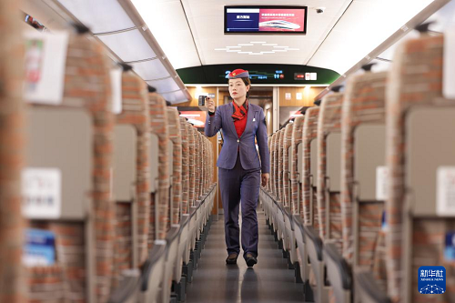 11月17日,乘務員在一列試驗動車組內(nèi)工作。(新華社發(fā) 賈智煒 攝)