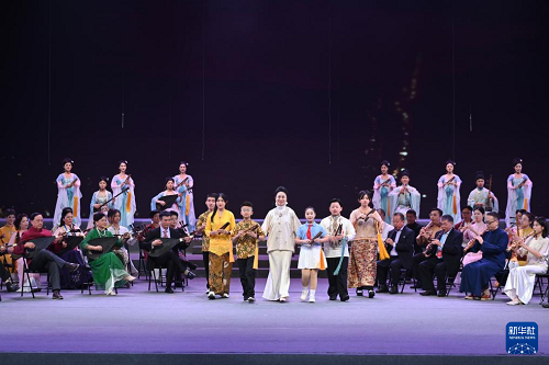 12月10日,南音社團代表及中小學生在“南音薪傳 四海弦歌”專場演出上表演。(新華社記者 姜克紅 攝)