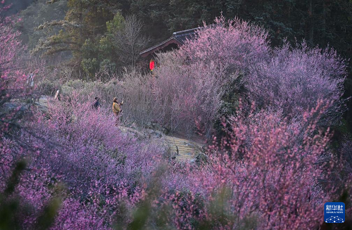 近日,在安徽省黃山市歙縣雄村鎮(zhèn)賣花漁村,漫山遍野的梅花綻放,花海與徽派村落民居相映成趣,景美如畫。