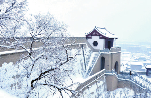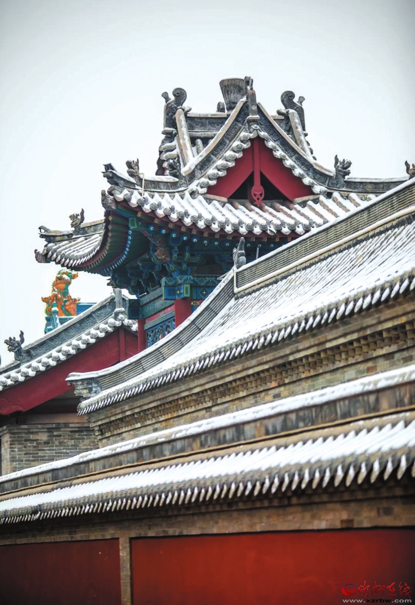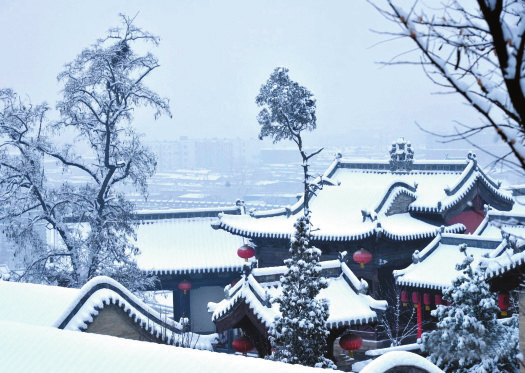 冬天一定要來(lái)忻州古城,因?yàn)檫@里的風(fēng)光大不一樣——它寒冷、莊嚴(yán),與遠(yuǎn)處的系舟山連成一片,煙波朦朧;它黯淡、粗獷,與整個(gè)北方的豪邁自成一體,氣勢(shì)磅礴。它就像這雪,能給人帶去希冀。雪安,忻州古城。