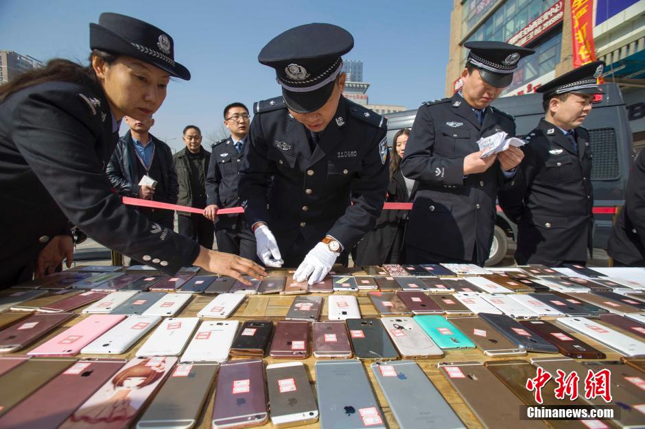 3月2日,山西太原警方發(fā)還民眾被盜手機(jī)。近日,太原市公安局偵破一個手機(jī)扒竊犯罪團(tuán)伙,破獲案件200余起,追繳手機(jī)180余部。張云 攝