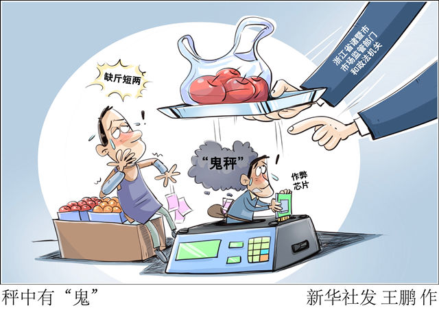 一臺(tái)小小的“鬼秤”,不僅侵害群眾合法權(quán)益,更有損公平誠(chéng)信的市場(chǎng)環(huán)境。執(zhí)法部門要主動(dòng)作為,為公序良俗撐腰,讓群眾利益得到保障;另一方面,遭遇缺斤短兩問(wèn)題,消費(fèi)者也不要忍氣吞聲,多和不法現(xiàn)象“較真”:買完菜上“安心秤”復(fù)稱一下,對(duì)不法行為堅(jiān)決舉報(bào)。大家合力,一起讓“鬼秤”無(wú)處遁形。