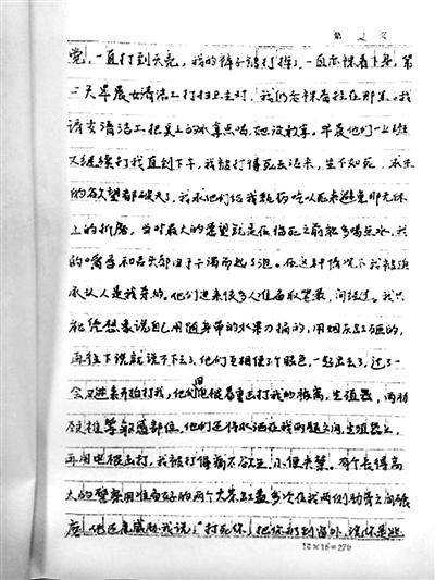 劉吉強還撰寫了一封控告信。控告信里,他描述了7天夢魘般的經(jīng)歷:辦案人員用腳踢他的臉,用手銬把他吊掛在鐵管做的橫梁上拳打腳踢,用電棍擊打身體的各部位。