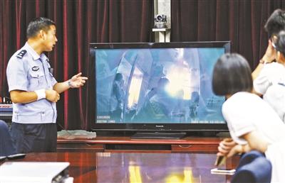 民警根據(jù)當(dāng)時拍攝的畫面講述事發(fā)經(jīng)過 攝影/本報記者 汪震龍