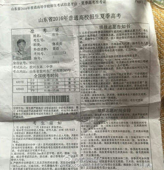 “如果不是他收到了通知書,我永遠(yuǎn)也不會(huì)知道這個(gè)秘密?!背I嬖V記者,他口中的“他”是室友兼摯友郭某。常升和郭某都是體育特長(zhǎng)生,兩人今年高考成績(jī)相仿,在填報(bào)志愿的當(dāng)天,先后用體育老師遲老師的電腦填報(bào)了志愿,均為陜西師范大學(xué)的免費(fèi)師范生。但是錄取通知一下,常升傻了眼,自己并沒(méi)有被錄取,但是比自己分?jǐn)?shù)更低的郭某卻收到了錄取通知書,而且陜西師范大學(xué)在山東招收的免費(fèi)師范生還沒(méi)有招滿,種種情況讓常升十分不理解。圖為常升高考相關(guān)信息。
