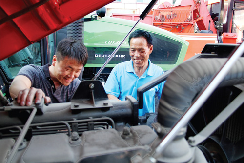 7 月13 日,兩位農(nóng)民在原平市農(nóng)機(jī)公司選購?fù)侠瓩C(jī)。近年來,原平市落實(shí)各項(xiàng)惠農(nóng)政策,極大地調(diào)動(dòng)了農(nóng)民購買和使用農(nóng)機(jī)具的積極性,在小麥?zhǔn)崭罱咏猜曋H,農(nóng)民抓緊時(shí)間選購?fù)侠瓩C(jī)等國家補(bǔ)貼農(nóng)機(jī)具,為在麥田地里進(jìn)行夏播做準(zhǔn)備。(褚震 攝)