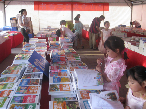 書展現(xiàn)場為240平方米的帳篷房,中外經(jīng)典名著、歷史、藝術、科學、生活、少兒類書籍琳瑯滿目,約有六、七千冊。所有圖書均可免費閱讀;學生、教師、軍人等重點群體可憑相關證件享受優(yōu)惠購書。舉辦方竭力豐富圖書品種、提升圖書品質,多展出群眾買得起、看得懂、用得上的圖書,確保以充足的資源、優(yōu)惠的價格、優(yōu)質的服務向廣大群眾提供優(yōu)秀出版物。雨過天晴,前來閱讀、購買的男女老幼絡繹不絕。