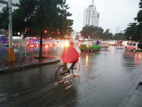 7月19日下午,連陰暴雨稍有緩解。記者首先驅(qū)車趕到市醫(yī)院舊址路段,這里是昔日波濤洶涌的地方,而今是紅綠燈灼灼,街面車來人往,雨流順暢。在人流密集、鋪面林立的老巷利民街,打傘買賣的人們絡(luò)繹不絕。記者沿主干道七一路北上,繞云中河景區(qū)一圈,沿牧馬路返回,再往建設(shè)路逡巡。在忻州污水處理廠,值班的高經(jīng)理告訴記者,市內(nèi)主干、支干及管道全部實(shí)施雨水、污水分流,全部暢通無阻,日處理能力在6萬噸以上。云中河景區(qū)主任孫曉雷早已領(lǐng)著職工沖向一線,在分流壩上調(diào)度洶涌的雨水,嘗試補(bǔ)充需求在70萬立方米以上的河水。記者最后一站來到市氣象局,24小時(shí)全天候值守的預(yù)報(bào)員說,從18日夜色中突來的強(qiáng)降雨,十幾個(gè)小時(shí)達(dá)到近年來最高值110.9毫米,占全年平均降水量1/4強(qiáng)。分為藍(lán)色、黃色、橙色的災(zāi)害預(yù)警信號(hào)連升三級(jí)。早8時(shí),市委書記李俊明進(jìn)入設(shè)在市水利局的應(yīng)急總指揮部指揮,而市長鄭連生趟雨在城區(qū)幾個(gè)重點(diǎn)地段巡查。風(fēng)雨中,記者既看到一幅幅生動(dòng)畫面,也感受到種種雨中情。無論在哪條街巷,時(shí)常闖入鏡頭、遇到最多的是頭戴斗笠,身著橘紅色工作服的環(huán)衛(wèi)工人,他們冒雨用鐵鍬或掃帚清理下水道口。如果加上交警和消防隊(duì)員,那就是雨中最美的一道風(fēng)景線。記者走進(jìn)已建成的大西高鐵客運(yùn)站,綠蔭蒼翠之中,滴滴雨珠如粒粒水晶豆,在光潔如鼓的柏油路上敲打、濺碎,那真是一種美妙。