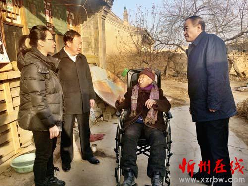 1月4日,山西省人防辦組織干部職工開展送溫暖、獻愛心活動。當日,省人防辦工作人員攜帶著38名干部職工捐款購買的大米、白面走進定點幫扶的繁峙縣光裕堡鄉(xiāng)光裕堡、華巖、大木瓜、小李牛四個貧困村,走訪慰問了630戶貧困戶,為他們送上慰問品和“愛心輪椅”,讓他們感受到了冬日的溫暖。圖為67歲的居大媽高興地試用愛心人士剛送到的新輪椅。(本報記者 李春平 攝)