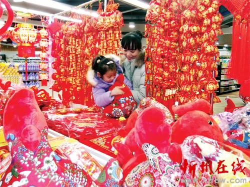 春節(jié)越來越近,我市各地迎新春氣氛越來越濃,市場上吉祥喜慶的商品琳瑯滿目,年味十足。1月10日,原平市一對母子正在挑選迎春飾品