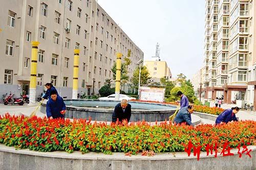忻州城區(qū)鴻喜園小區(qū)物業(yè)管理辦始終以創(chuàng)建文明城市、共建美好家園為宗旨,小區(qū)內(nèi)呈現(xiàn)出一派綠色、整潔、優(yōu)雅的景象,被市房地產(chǎn)管理局評為優(yōu)秀住宅小區(qū)。圖為近日小區(qū)物業(yè)工作人員修建花葉,美化環(huán)境,以實際行動迎接黨的十九大勝利召開。王金龍 攝