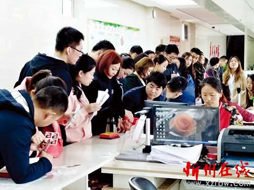 本報訊10月10日,寓意“十全十美、幸??鞓贰?,一大早,在城區(qū)慕山南路忻府區(qū)政務大廳前,就有好幾對準新人等候在那里,準備領取結婚證。記者在現(xiàn)場看到,還有一對對準新人正陸續(xù)走進大廳。
