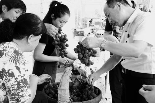 8月27日,位于河偏路邊的河曲縣焦尾城村葡萄交易市場(chǎng),迎來(lái)一撥又一撥停車選購(gòu)葡萄的顧客。該村大力發(fā)展無(wú)公害綠色葡萄,所產(chǎn)葡萄酸甜適度,口感極佳,在廣大消費(fèi)者心目中樹(shù)立了良好品牌形象,農(nóng)民因此獲得了可觀的經(jīng)濟(jì)收入。(賈金理 攝)