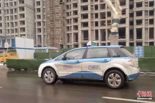 河南安陽,路上行駛的新能源出租車。張旭 攝