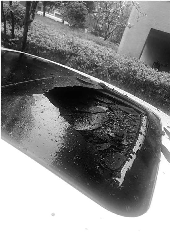 李師傅掏出手機,給錢報記者看了當時車子被砸的照片:“你看,這個車子頂部都被砸出一個窟窿。真的是缺德,車頂都被砸穿了!”