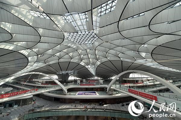 北京大興國際機(jī)場作為獻(xiàn)禮新中國成立70周年的國家標(biāo)志性工程,地處京津冀核心地帶,是未來國家乃至世界級綜合交通樞紐。從空中俯瞰海星狀的航站樓,五個支廊呈放射狀從航站樓中心向外延伸出去,像一只鋼鐵大鳥展翅欲飛。