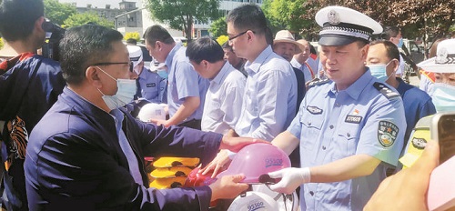 本報(bào)訊 為最大限度減少因交通事故造成的人員傷亡,5月14日,市公安局交警支隊(duì)聯(lián)合市保險(xiǎn)業(yè)協(xié)會(huì)、太平洋保險(xiǎn)忻州分公司和城區(qū)快遞、外賣企業(yè),舉辦以“一盔一帶”為主題的警企聯(lián)合勸導(dǎo)活動(dòng),在進(jìn)行安全宣傳的同時(shí),為途經(jīng)的騎行市民發(fā)放安全頭盔。對(duì)駕乘摩托車不佩戴頭盔、駕乘車輛不按規(guī)定佩戴安全帶的交通違法行為進(jìn)行勸導(dǎo),積極倡導(dǎo)市民在騎電動(dòng)自行車時(shí)佩戴頭盔。