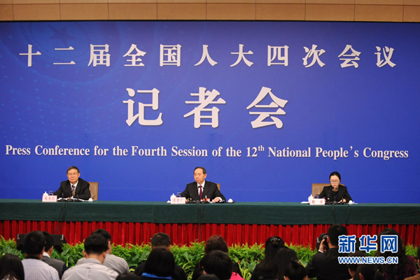3月10日,十二屆全國(guó)人大四次會(huì)議新聞中心舉行記者會(huì),邀請(qǐng)教育部部長(zhǎng)袁貴仁就“教育改革和發(fā)展”的相關(guān)問題回答中外記者的提問。圖為記者會(huì)現(xiàn)場(chǎng)。新華網(wǎng)/中國(guó)政府網(wǎng) 陳杰 攝