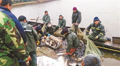 馬總稱,沁湖大約有200多畝,這批魚是今年二三月份的時候往沁湖里投放的,當(dāng)時投放的魚苗達(dá)一萬斤左右,均為白鰱、花鰱、草魚等品種,“我們在水底種了水草,平時還配了一點魚飼料。”