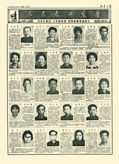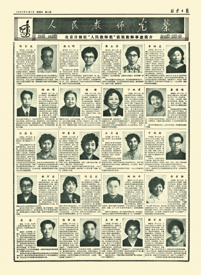 1985年,北京日報社“人民教師獎”獲獎教師事跡簡介