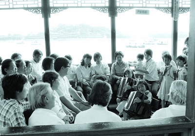 ▼1986年教師節(jié)前夕,東城區(qū)安定門街道舉行游船聯(lián)歡活動,慰問中小學(xué)和幼兒園教師。王振民/攝