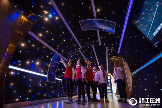 10月9日,杭州長(zhǎng)江實(shí)驗(yàn)小學(xué),教學(xué)樓間的一條“星際隧道”群星璀璨,吸引了不少好奇的學(xué)生。