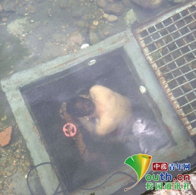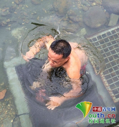 中國青年網(wǎng)福州10月13日電(通訊員 王艷東 陳燕純)近日,一條微博和三張組圖在網(wǎng)上廣為流傳。畫面中,一位中年大叔光著身子憋著氣,潛到一人深的水下維修水管,不時起來換氣然后又一頭扎到水里。配文說是閩江學(xué)院的學(xué)生拍攝了一組學(xué)校水電工下水維修的照片。