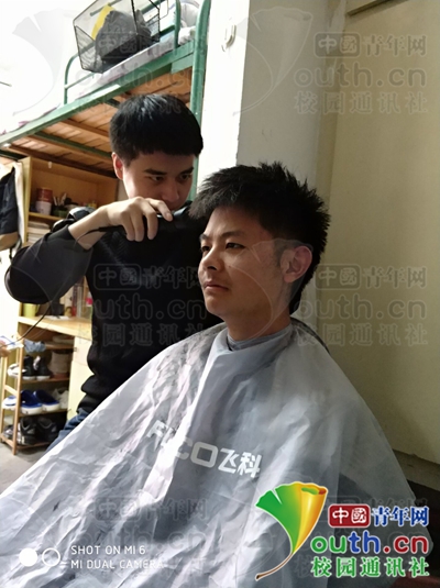 圖為彭政正在為同學(xué)理發(fā)。受訪(fǎng)者供圖