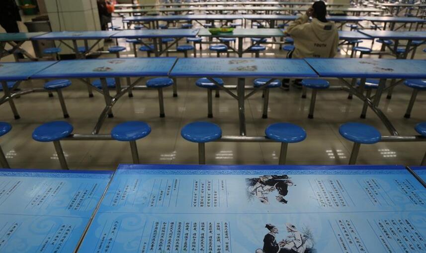 河南中醫(yī)藥大學餐廳的地面、餐桌上都寫滿了藥方和中醫(yī)典籍名句,被戲稱為“最學霸食堂”。
