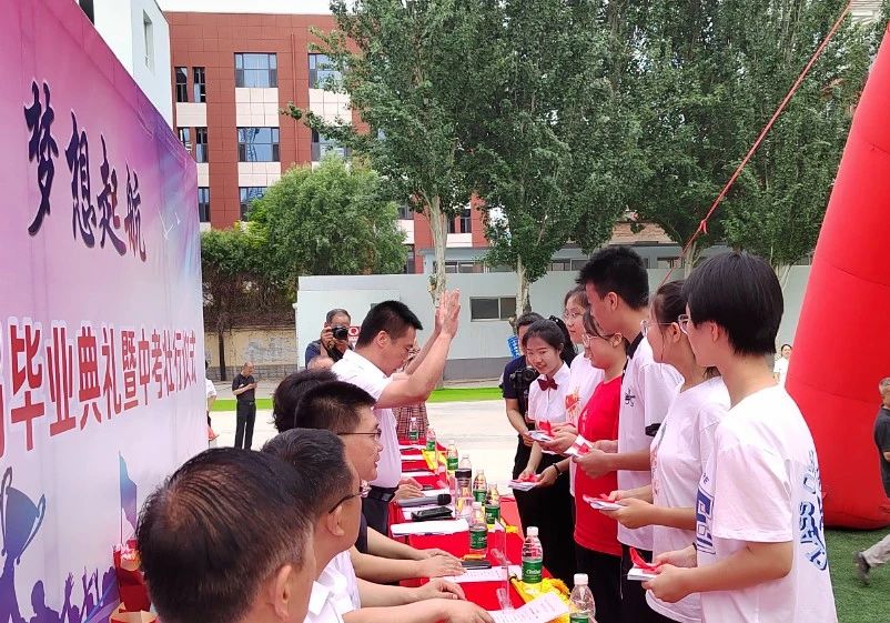 趙俊瑞校長(zhǎng)為初三學(xué)子頒發(fā)畢業(yè)證書(shū),隨著一份份畢業(yè)證書(shū)的發(fā)放,畢業(yè)生們與五中的故事也將落下帷幕,但青春不散,記憶不散。