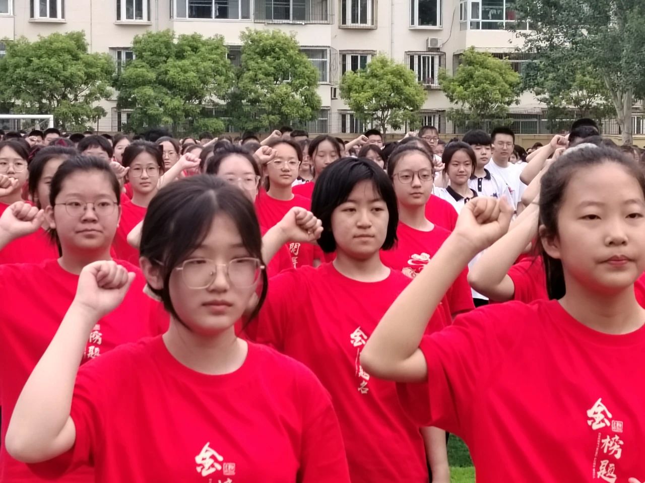 畢業(yè)宣誓環(huán)節(jié),全體初三學(xué)子舉起右拳,錚錚誓言承載著同學(xué)們的激情與夢(mèng)想,響徹校園!七、八年級(jí)吶喊助威,祝愿學(xué)長(zhǎng)學(xué)姐們考試順利,金榜題名!