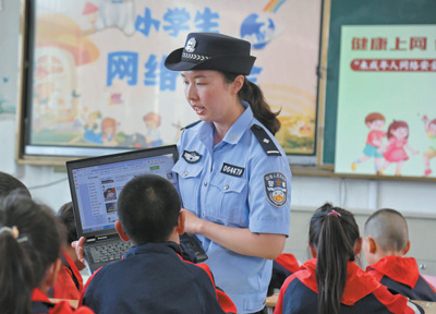 江蘇省海安市公安局墩頭派出所民警在學(xué)校引導(dǎo)學(xué)生安全上網(wǎng)、文明上網(wǎng)。周 強攝(人民視覺)