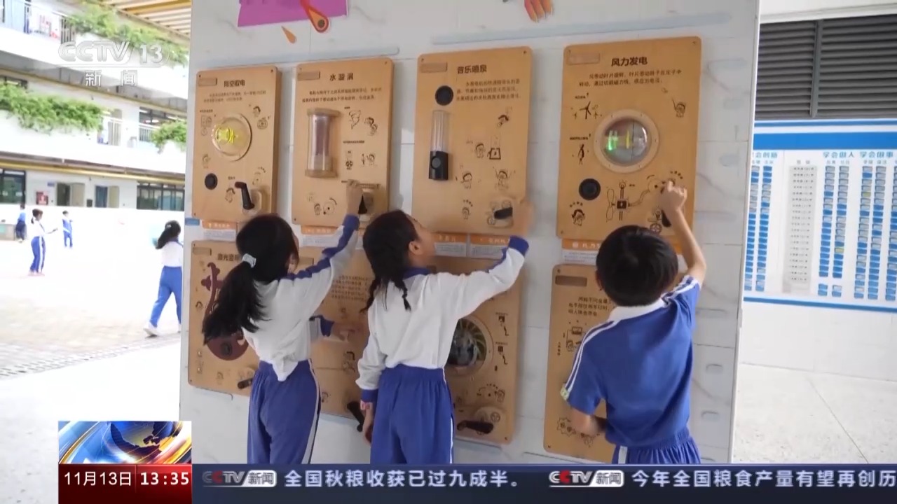 如果同學(xué)們課間不想運(yùn)動(dòng),學(xué)校還在每層布置了科學(xué)互動(dòng)角,“發(fā)電輪”“燈光隧道”“音樂噴泉”“水漩渦”等十幾個(gè)交互式科技項(xiàng)目也在課間對(duì)同學(xué)們開放。