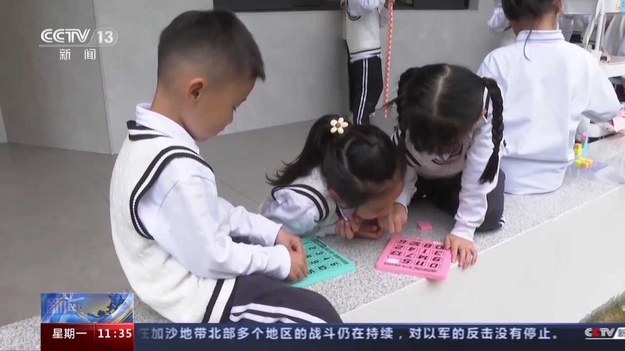 記者看到,因?yàn)槊娣e局促,學(xué)校對(duì)所有活動(dòng)空間都進(jìn)行了精心規(guī)劃改造。在教室里,每個(gè)班都設(shè)置了像這樣的游戲角,利用飛行棋、自制古詩卡等三五分鐘就能開展起來的益智類小游戲,讓同學(xué)們?cè)谟邢蘅臻g內(nèi)放松心情;學(xué)校還專門對(duì)這個(gè)閱讀空間進(jìn)行了改造,增設(shè)了跳繩、乒乓球、鋼琴和國際象棋等室內(nèi)運(yùn)動(dòng)和游戲區(qū)域,在戶外,則增設(shè)了器械區(qū)和攀巖墻。